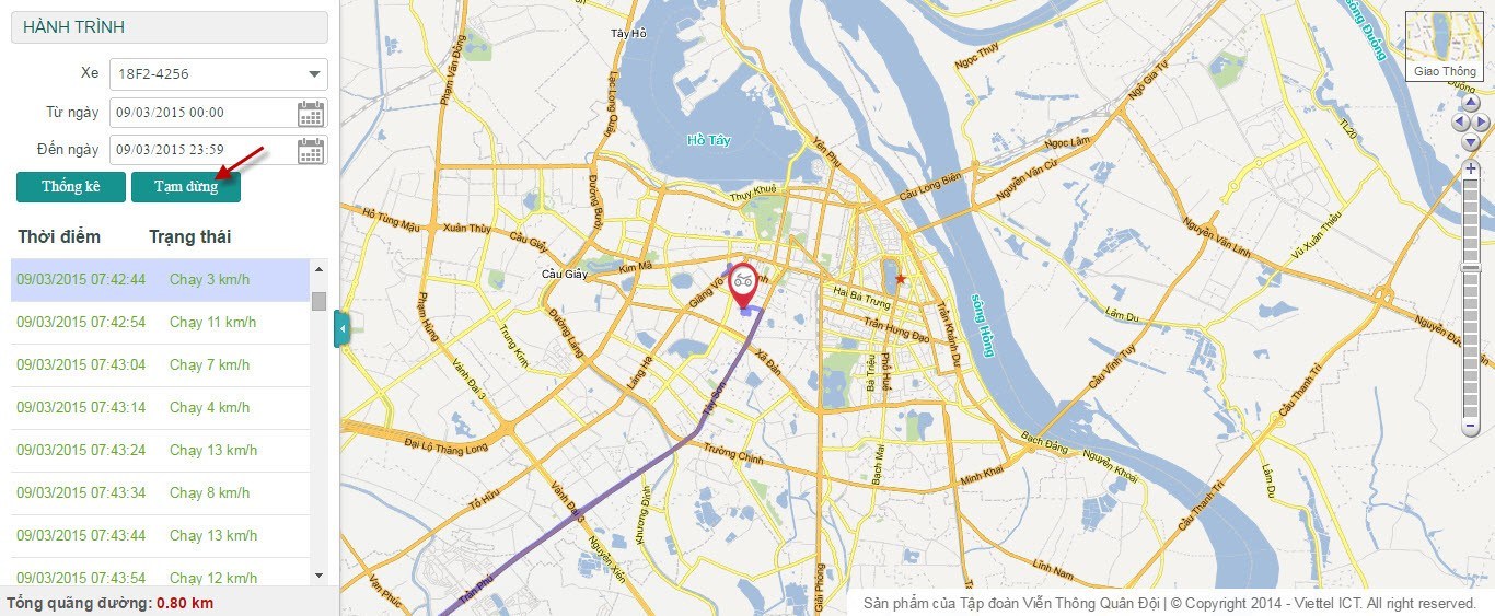 Trên bản đồ số xuất hiện một biểu tượng xe chạy theo lộ trình, tương ứng với thời điểm dữ liệu hiển thị trong Bảng.